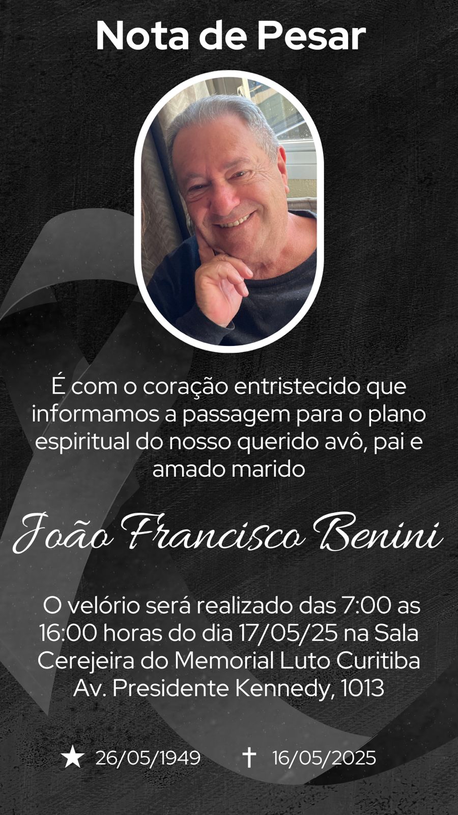 Bom dia, pessoal. É com muito pesar que comunicamos o falecimento do nosso colega JOÃO FRANCISCO BENINI, ocorrido na tarde de 16/05/2025. Xiko como era carinhosamente chamado foi um dos fundadores da Afaban, sempre presente com sua postura serena, sua educação exemplar e seu espírito colaborativo. Atuou com zelo e responsabilidade como nosso tesoureiro por muitos anos, contribuindo com grande competência para o crescimento e a solidez da entidade que tanto amava. Sua presença sempre foi sinônimo de confiança, harmonia e amizade. Hoje sentimos a dor da ausência, mas também a gratidão imensa por termos convivido com alguém tão especial. Aos familiares, nosso carinho e solidariedade.